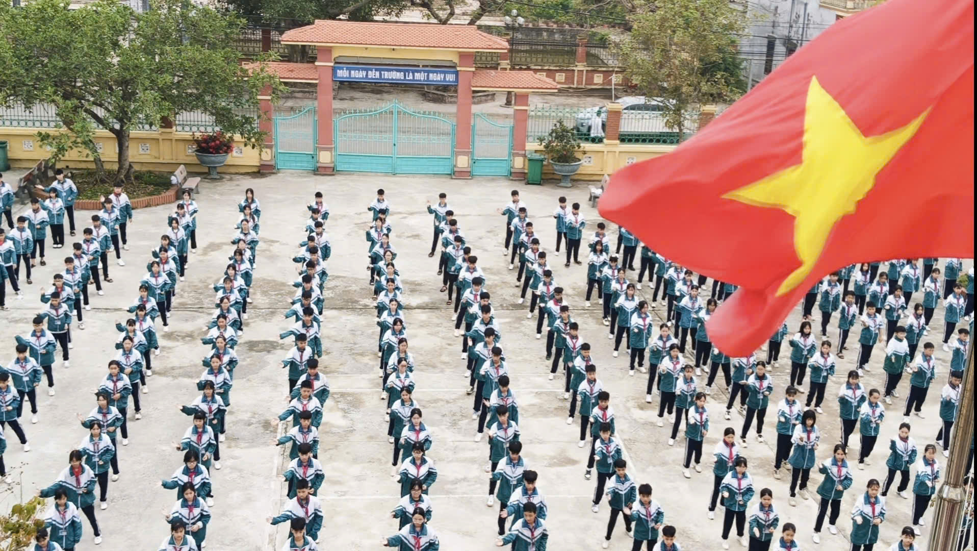 Tại sân trường THCS Nghĩa Tân: Các em học sinh đã thực hiện những động tác võ thuật dứt khoát, mạnh mẽ trên nền nhạc hào hùng. Những tiếng hô vang đầy nội lực không chỉ thể hiện sức khỏe thể chất mà còn là sự kết tinh của tinh thần “Học võ Việt – Yêu nước Việt”.