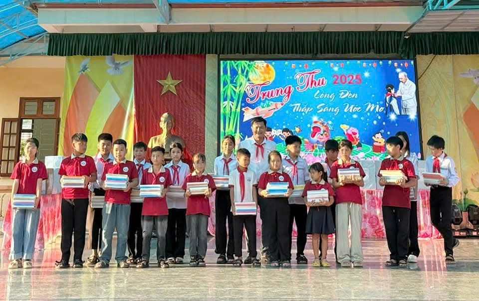 - Nhà trường và Hội cha mẹ học sinh: Đại diện 3 nhà trường Mầm non, Tiểu học, THCS và Ban đại diện cha mẹ học sinh cũng đã chuẩn bị những phần quà thiết thực để động viên các em.Những món quà tuy nhỏ nhưng chứa đựng tình cảm lớn lao, là nguồn động viên to lớn giúp các em cảm nhận được sự yêu thương, quan tâm của cả cộng đồng, đúng với tinh thần “thắp sáng ước mơ” cho thế hệ tương lai.